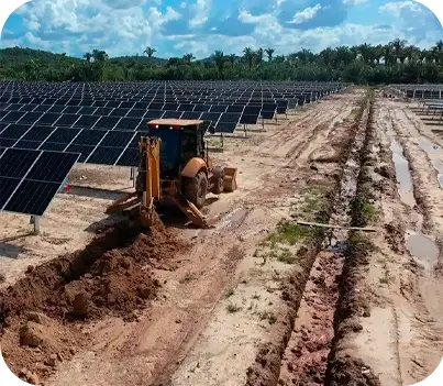 Atuamos no desenvolvimento e implantação de usinas solares (UFV) e parques eólicos em todo o Brasil. Com uma abordagem técnica, integrada e sustentável, oferecemos desde estudos iniciais e projetos executivos até a construção, comissionamento e legalização dos empreendimentos. Energia renovável exige precisão, agilidade e visão de futuro — e é isso que entregamos em cada projeto.